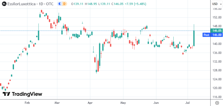 受该消息影响,依视路陆逊梯卡的美国存托凭证(ADR)日内一度涨近7.6%,最终收涨5.48%,为4月10日来最大单日涨幅。